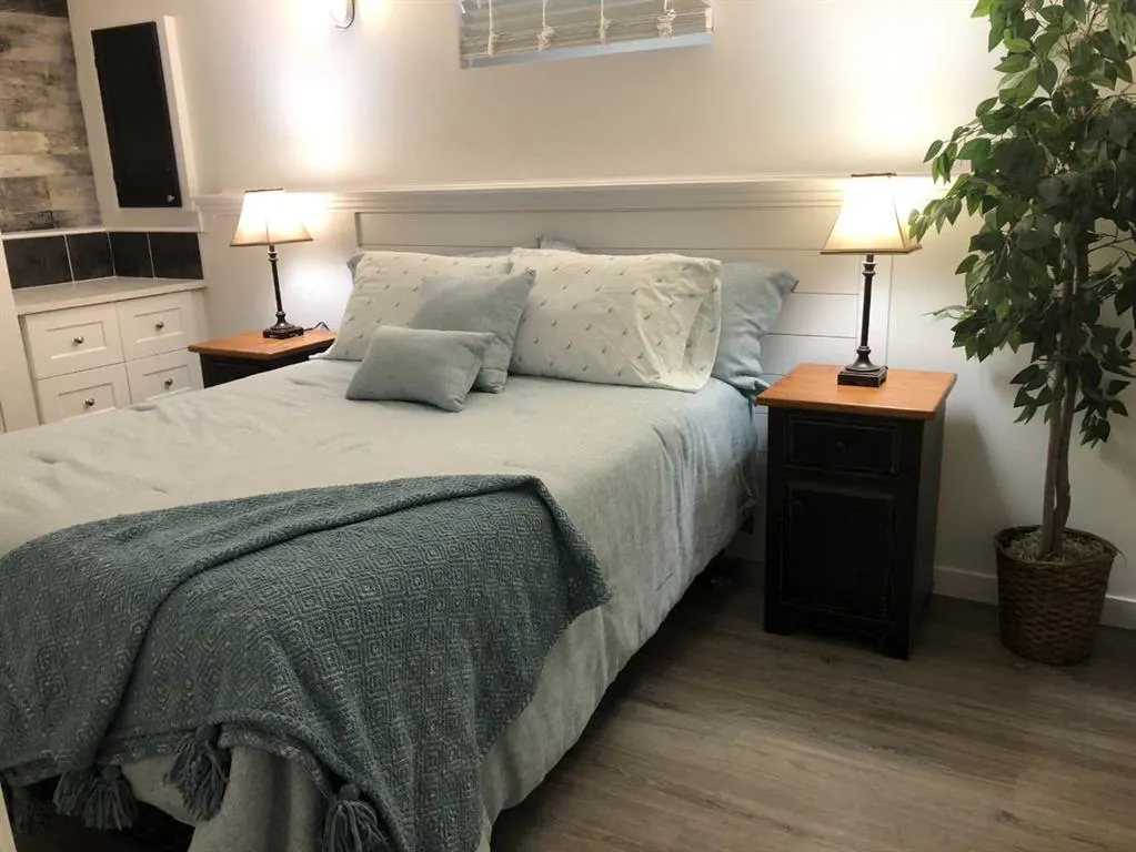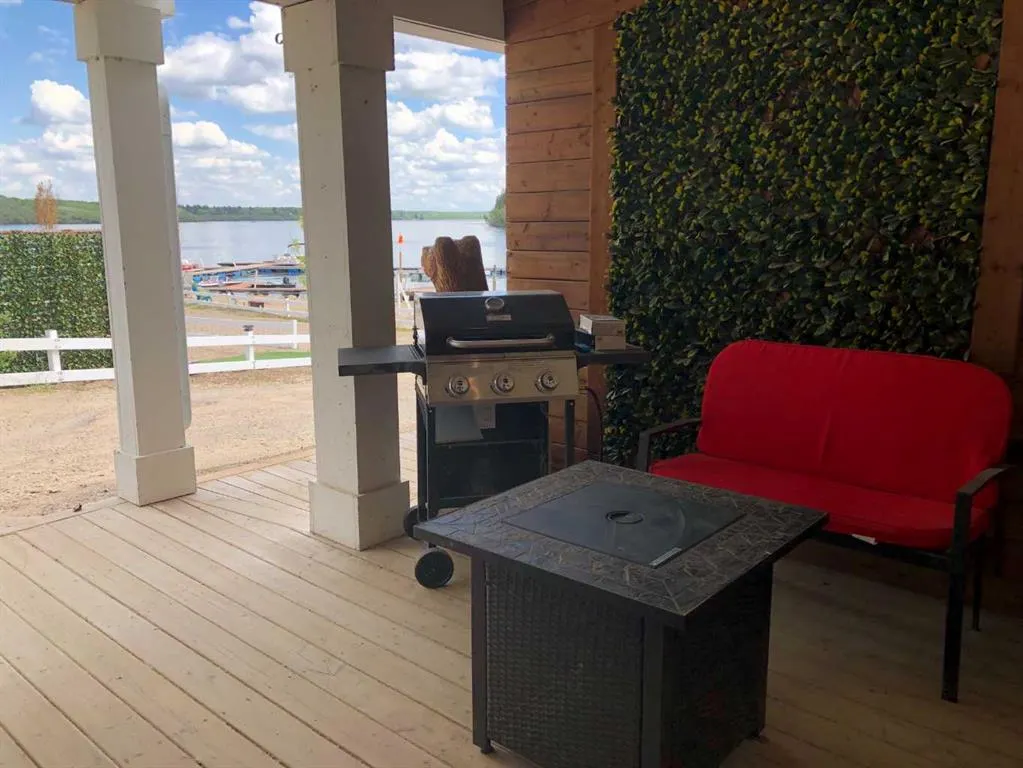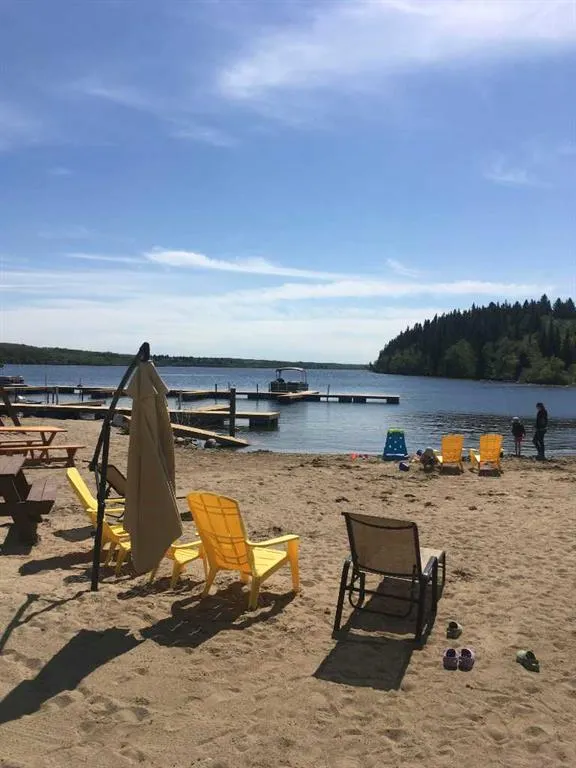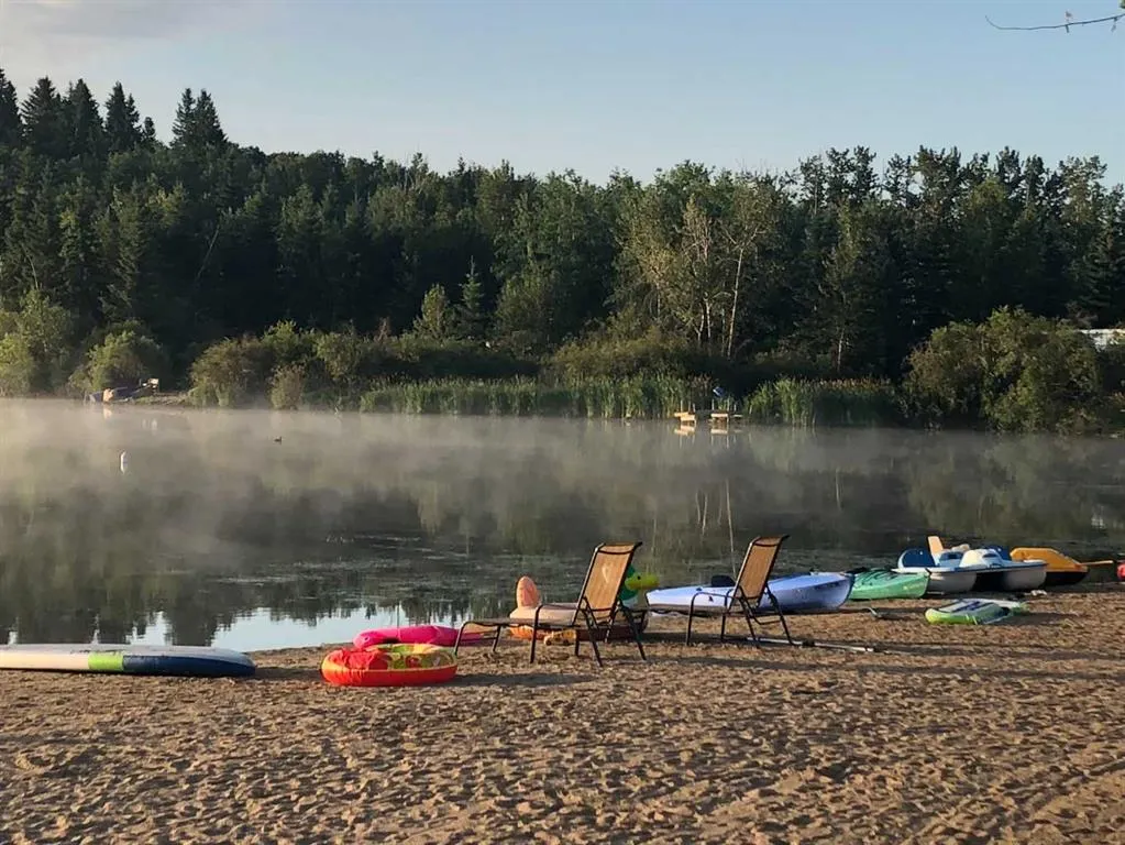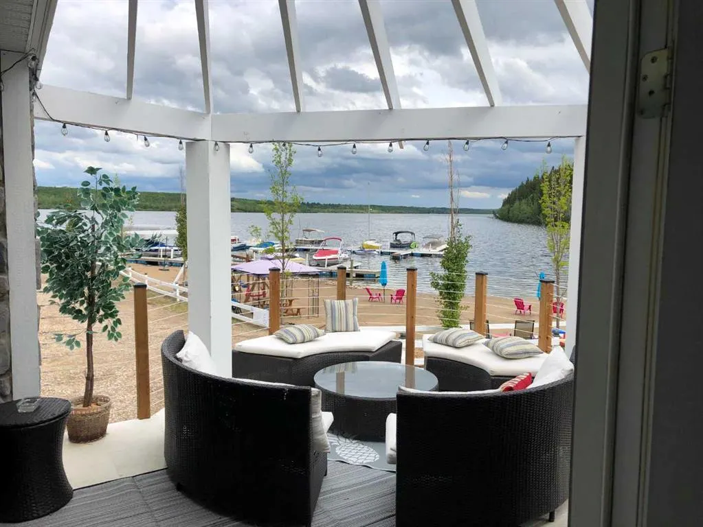 Rare opportunity to own a lakeside income property on 1.37 acres at Pine Lake, just 25 mins from Red Deer. This turnkey resort-style package includes a private 30-slip marina with boat launches, multiple leased RV lots, and a 2,600 sq ft walk-out home with two covered decks overlooking the lake. The... upper level offers 2 bedrooms plus den, master suite, kitchen, and fenced yard with hot tub. A fully developed side suite provides rental income, while the partially finished walk-out level offers potential for another full suite. The attached garage and separate workshop (with bathroom and laundry for RV guests) add convenience and functionality. All RV lots are leased under low-maintenance agreements providing steady, hands-off income. Private sandy beach, next to Whispering Pines Golf Course—live on the lake, earn income year-round, and enjoy resort living at its best.